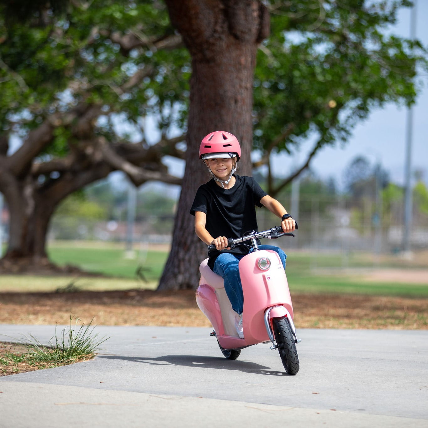 You're all about style, retro or vintage, and the color story is just as important to you. With the Pocket Mod, the hub-driven electric motor powers riders up to 15 mph (24 km/h) in the default high speed mode. A high/low speed control switch allows the selection of the right maximum speed, up to 10 mph (16 km/h) in the low speed mode for younger children and beginner riders. With a secret storage compartment, dual kickstand, padded seat, and controls at your fingertips – it all adds up to an amazing ride. Sit back, relax, and enjoy the bliss.