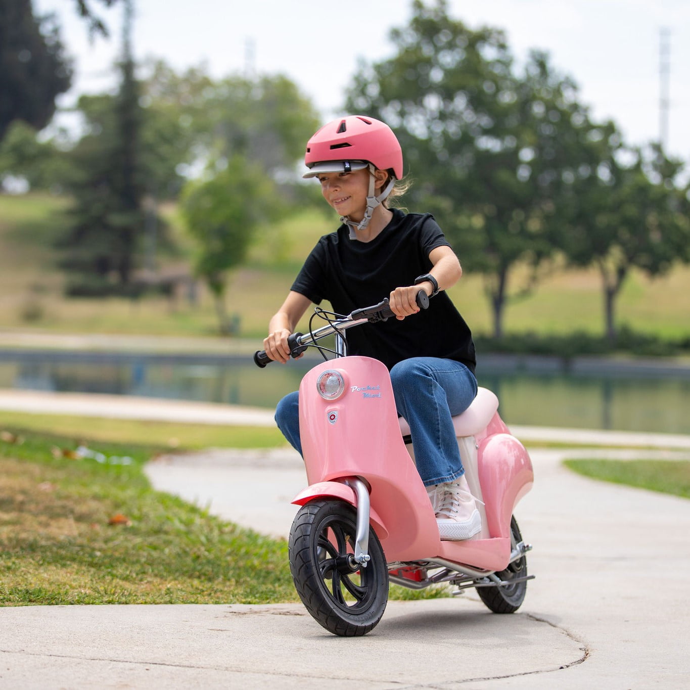 Authentic But New – With its padded seat, twist-grip throttle control, and hand-operated brake, the Pocket Mod is a scaled-down European scooter that looks and feels like the real thing.